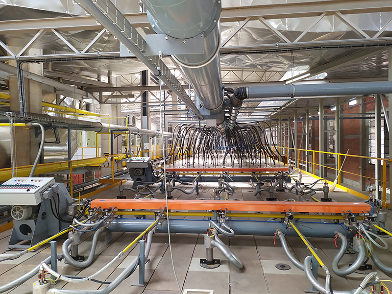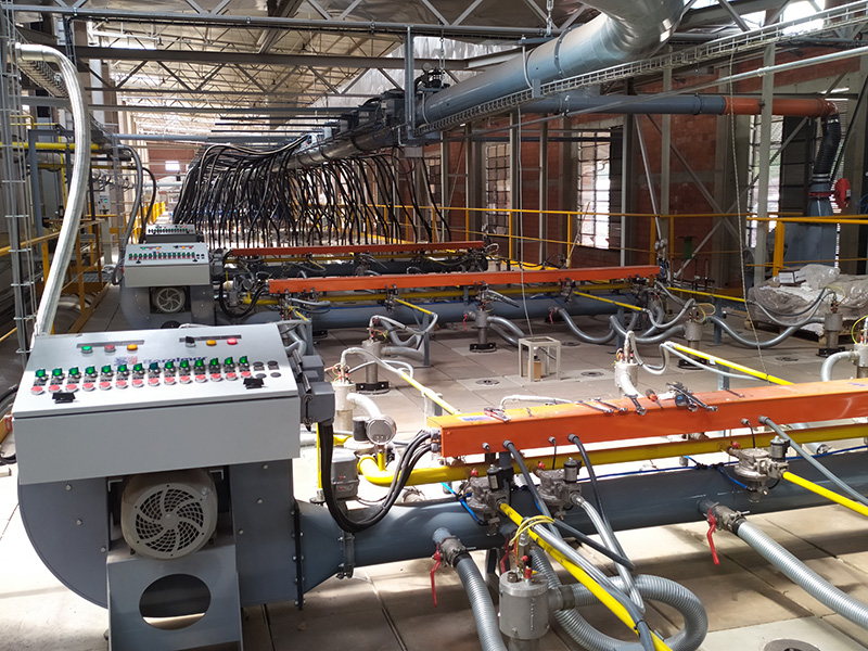 - 4 grupos de quemadores de alta velocidad verticales modelo FOC10, configurados sobre 16 hileras de la zona de pre-calentamiento del horno.