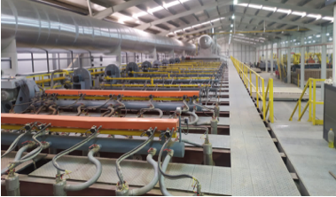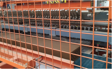 - Línea completa de mecanismos multi-producto, especialmente compleja debido a la amplia gama de formatos fabricados. Hay varios cortadores, biseladora, muchas mesas de programación y se ha optado por robots en varios puntos.