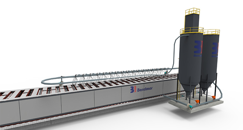 El sistema MICROMATIC consiste en silos de almacenamiento, un circuito cerrado de distribución, equipos de inyección y control automático de todo el proceso.