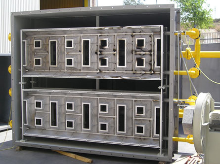 La aplicación industrial de este tipo de quemadores se extiende a diversos sectores como pueden ser: Secadores cerámicos, cereales, materiales plásticos, alimentación, textil, cabinas de pintura, etc. Su montaje en función de las caracteristicas de la instalación puede ser, exterior, o bien interior al conducto del aire a calentar y trabajar en zonas de presiones positivas (impulsión) o negativas (aspiración).