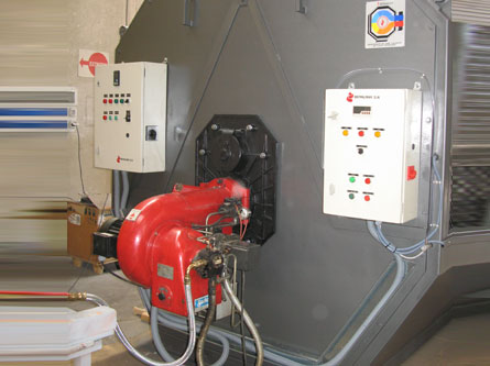 - Se suministra equipado con quemador de fuel-oil -denso por inyección, de 2 velocidades o modulante, directamente a alta presión, provisto de instrumentos y maniobra para el gobierno completamente automático de la temperatura.